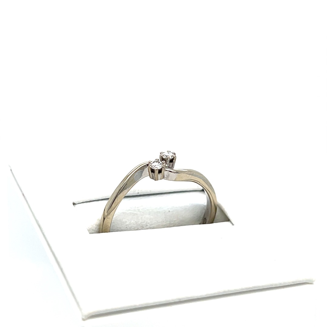 Occasion 14 karaat witgouden slagring met 2 briljanten
