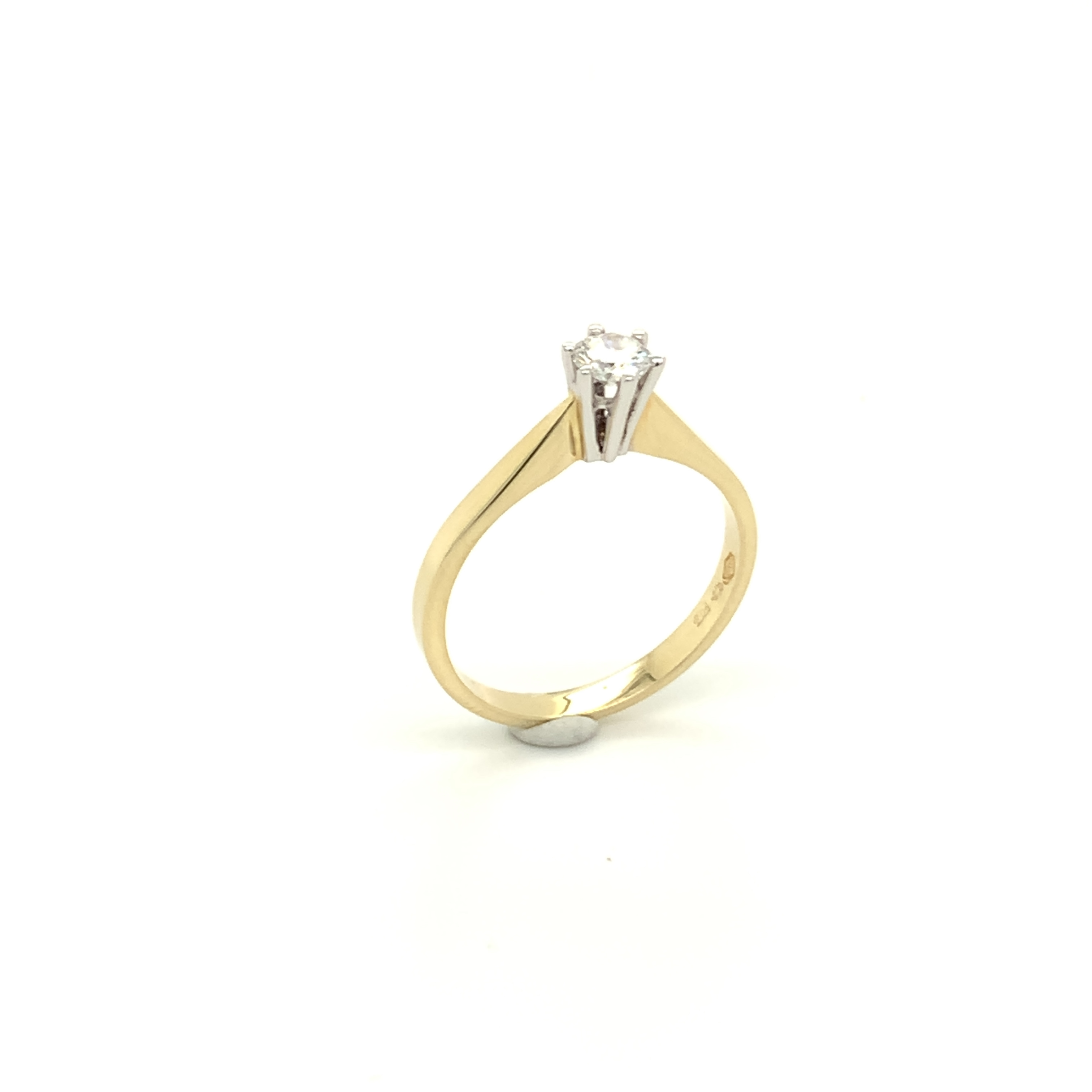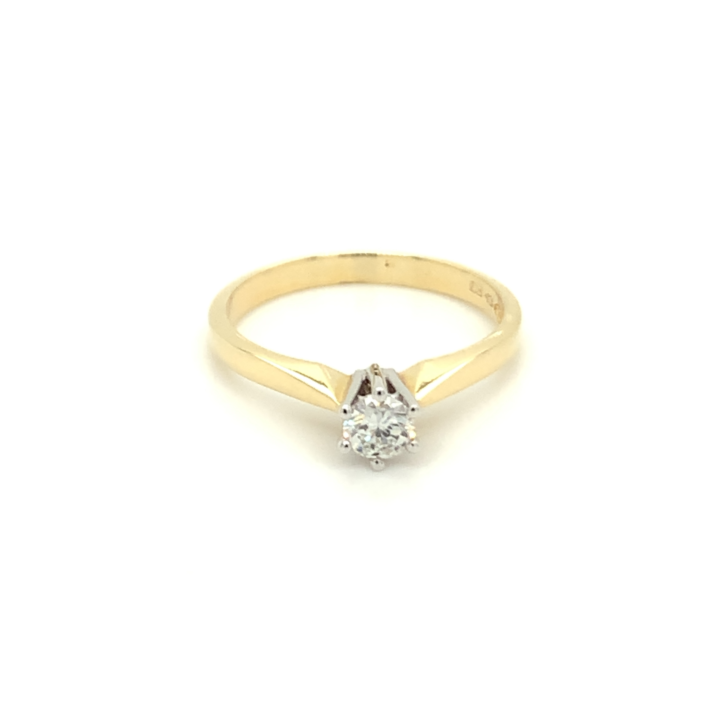Prachtige 14krt geel gouden solitair ring met briljant 0.26crt maat 17.5