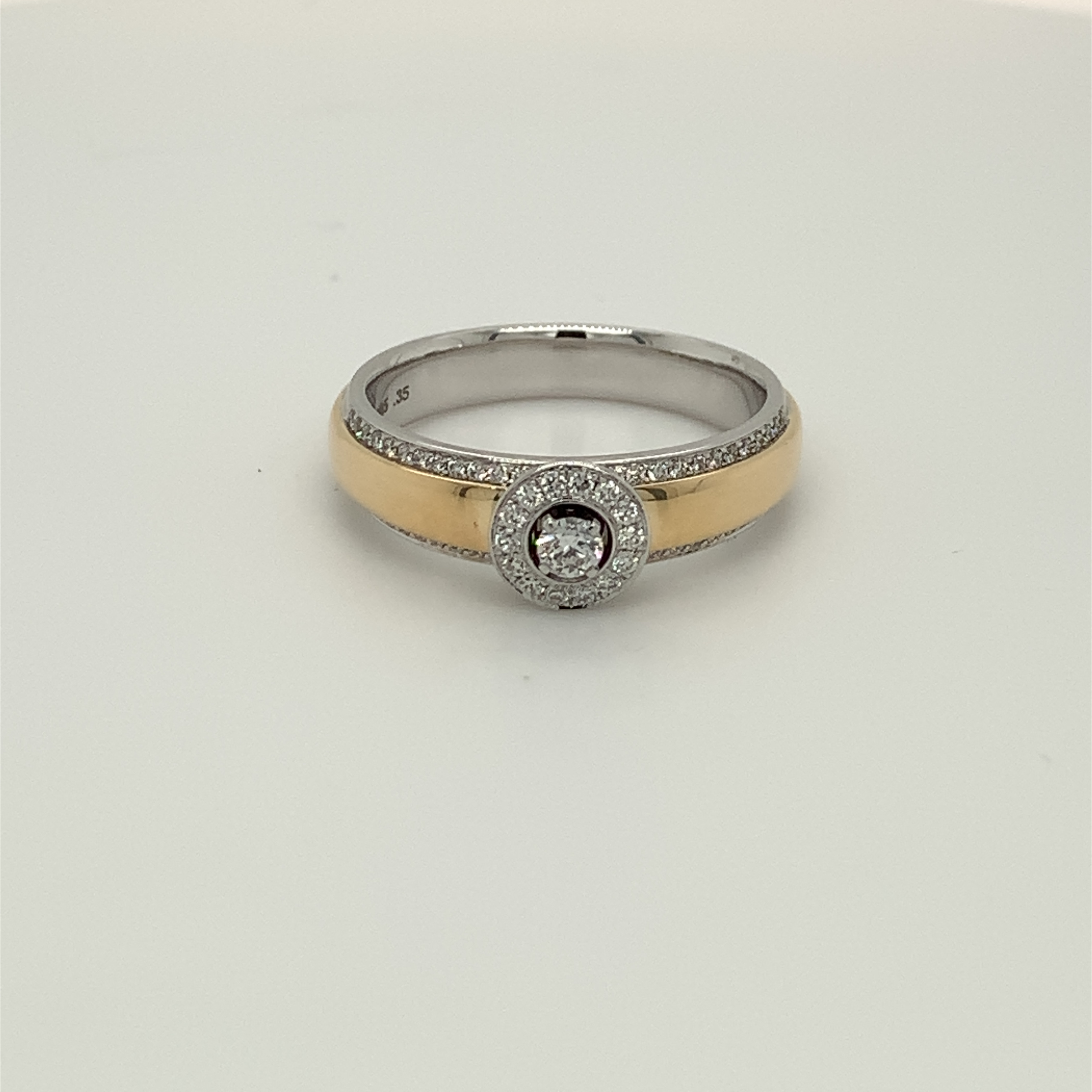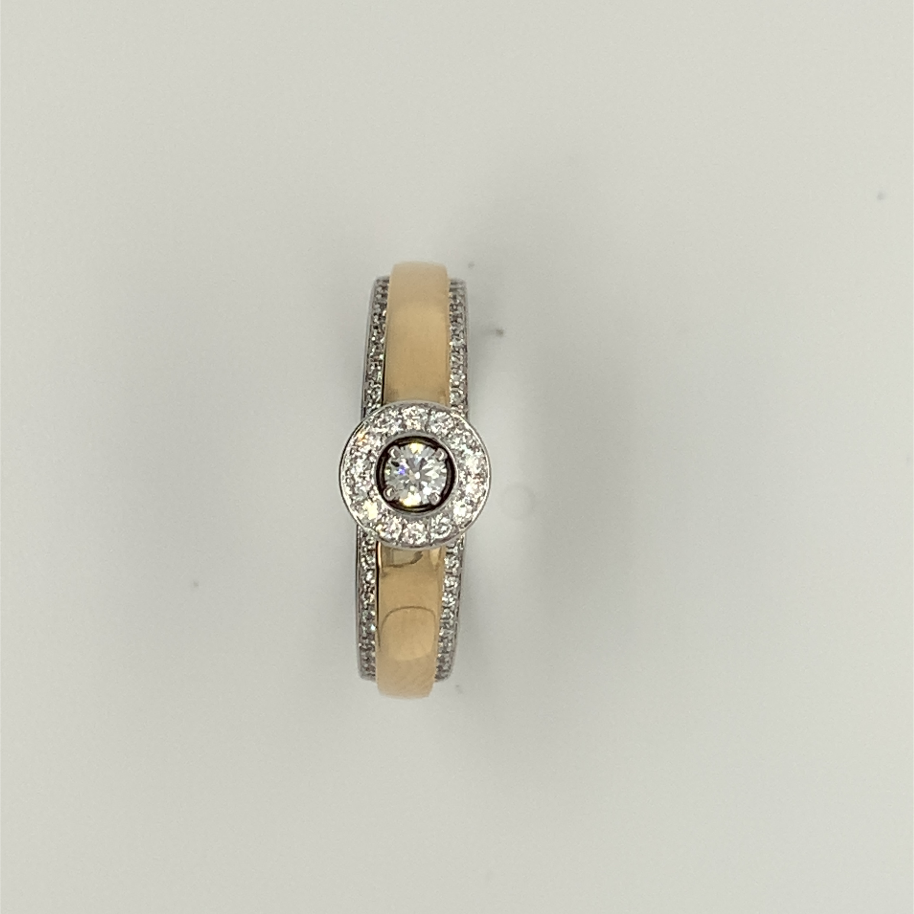 Super mooie gouden ring bicolor 14krt met briljant 69-0.35crt