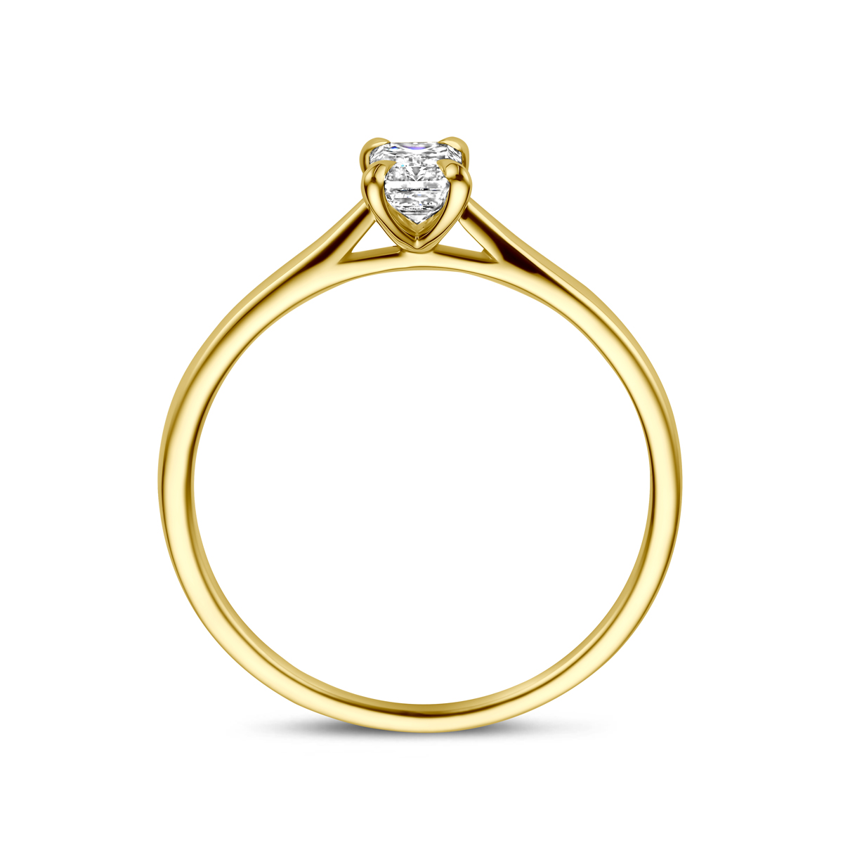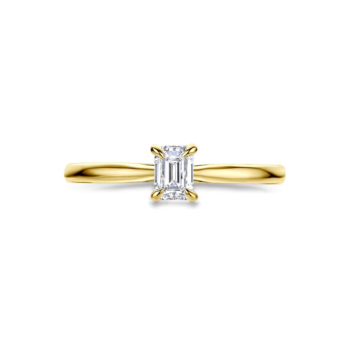 14k Geelgouden ring uitgevoerd met lab grown diamant. De ring heeft een breedte van 6.0mm. Het diamantgewicht is 0.50ct. Lab grown diamanten zijn diamanten die ontstaan in een laboratorium. Onder extreem hoge druk en temperatuur wordt het natuurlijk ontstaansproces nagebootst met als eindresultaat een diamant met dezelfde chemische eigenschappen maar met een andere oorsprong.