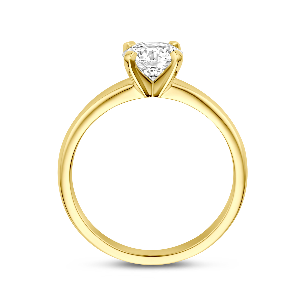 14k Geelgouden ring uitgevoerd met lab grown diamant. Het totale diamantgewicht is 1.00ct. Dit artikel wordt geleverd met certificaat van de diamant.