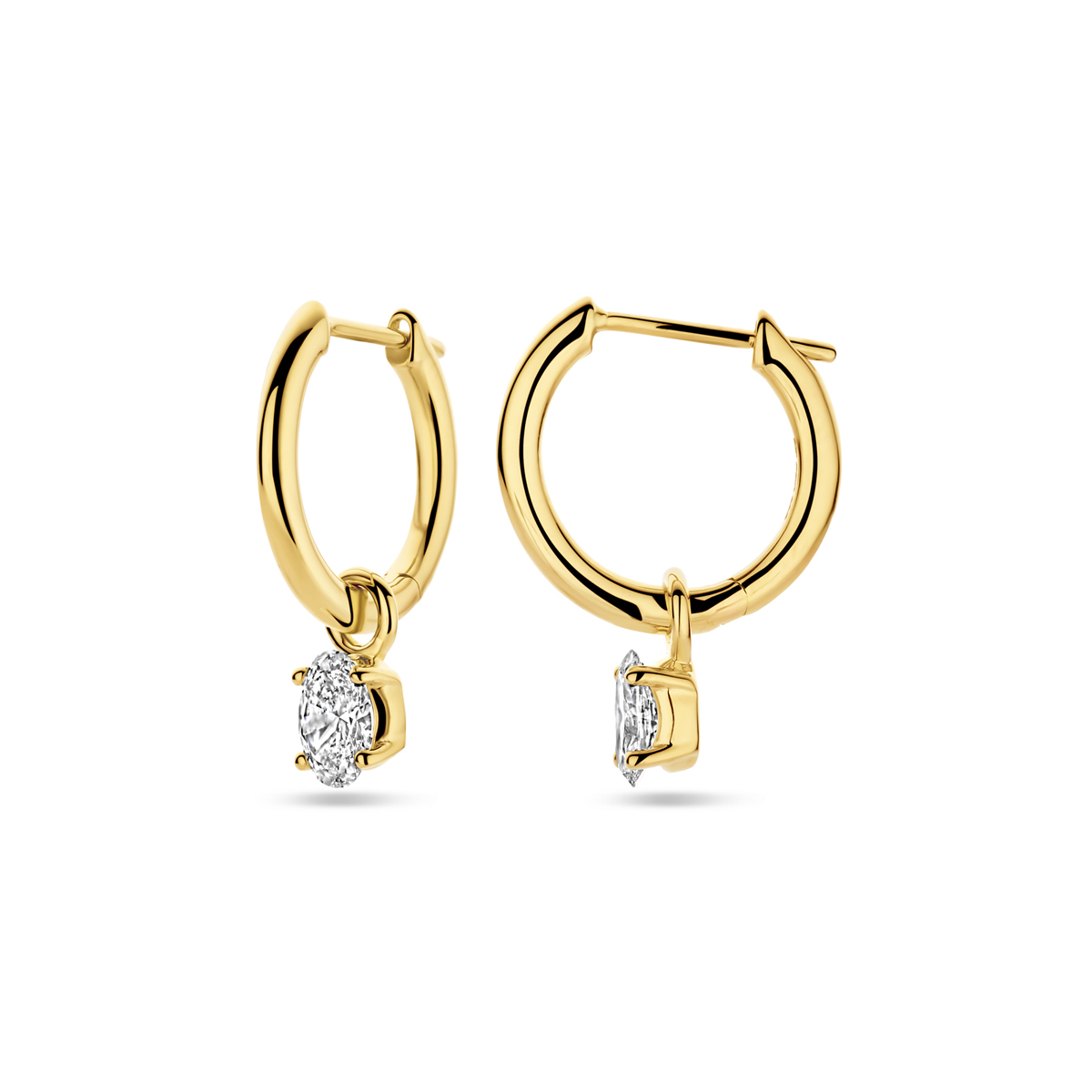 14k Geelgouden oorringen met een totale hoogte van 18mm. Het totale diamantgewicht is 0.50ct. Lab grown diamanten zijn diamanten die ontstaan in een laboratorium. Onder extreem hoge druk en temperatuur wordt het natuurlijk ontstaansproces nagebootst met als eindresultaat een diamant met dezelfde chemische eigenschappen maar met een andere oorsprong.