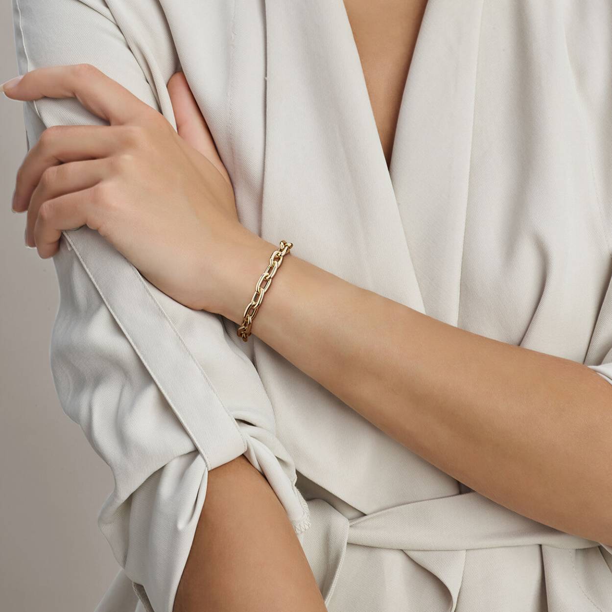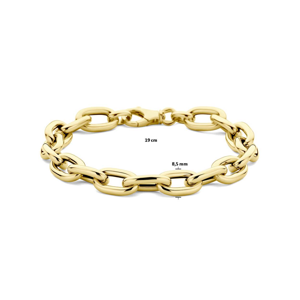 14k Geelgouden armband met een draaglengte van 19cm. De schakelbreedte is 8.5mm. Uitgevoerd met een karabijn sluiting.