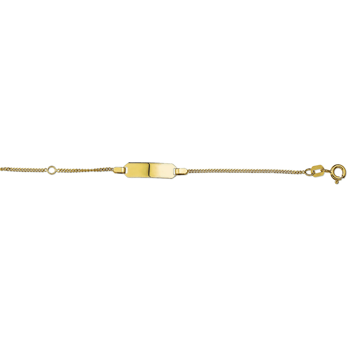 Geelgouden graveerarmband met een poli afwerking. De graveerplaat heeft een dikte van 0.5mm. De schakelbreedte is 1.0mm.