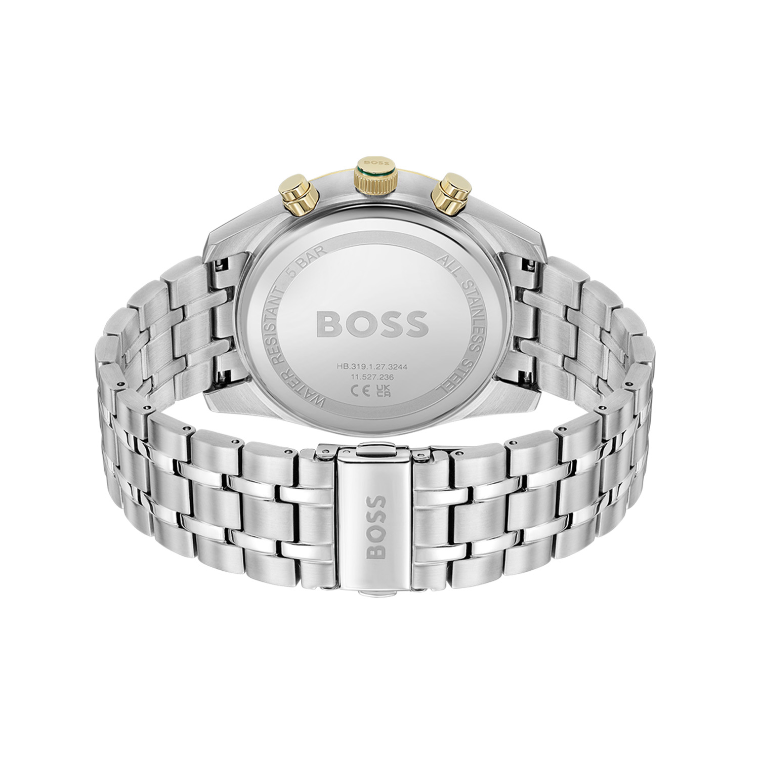 Dit BOSS horloge uit de SKYTRAVELLER serie met artikelnr: HB1514195 heeft een luxe sportieve uitstraling. Zeer geschikt voor de moderne stijlvolle man van nu. Het herenhorloge valt op door zijn stalen horlogekast met een gladde goudkleurige bezel en een donker groene sunray wijzerplaat met een chronograaf en datum. Opvallend zijn de wijzers die met kleur en lumibrite de tijd aangeven. Aan de kast zit een stalen fijne schakelband met vouwsluiting. Het horloge heeft een doorsnee van 44mm met een mineraalglas en is 5ATM.