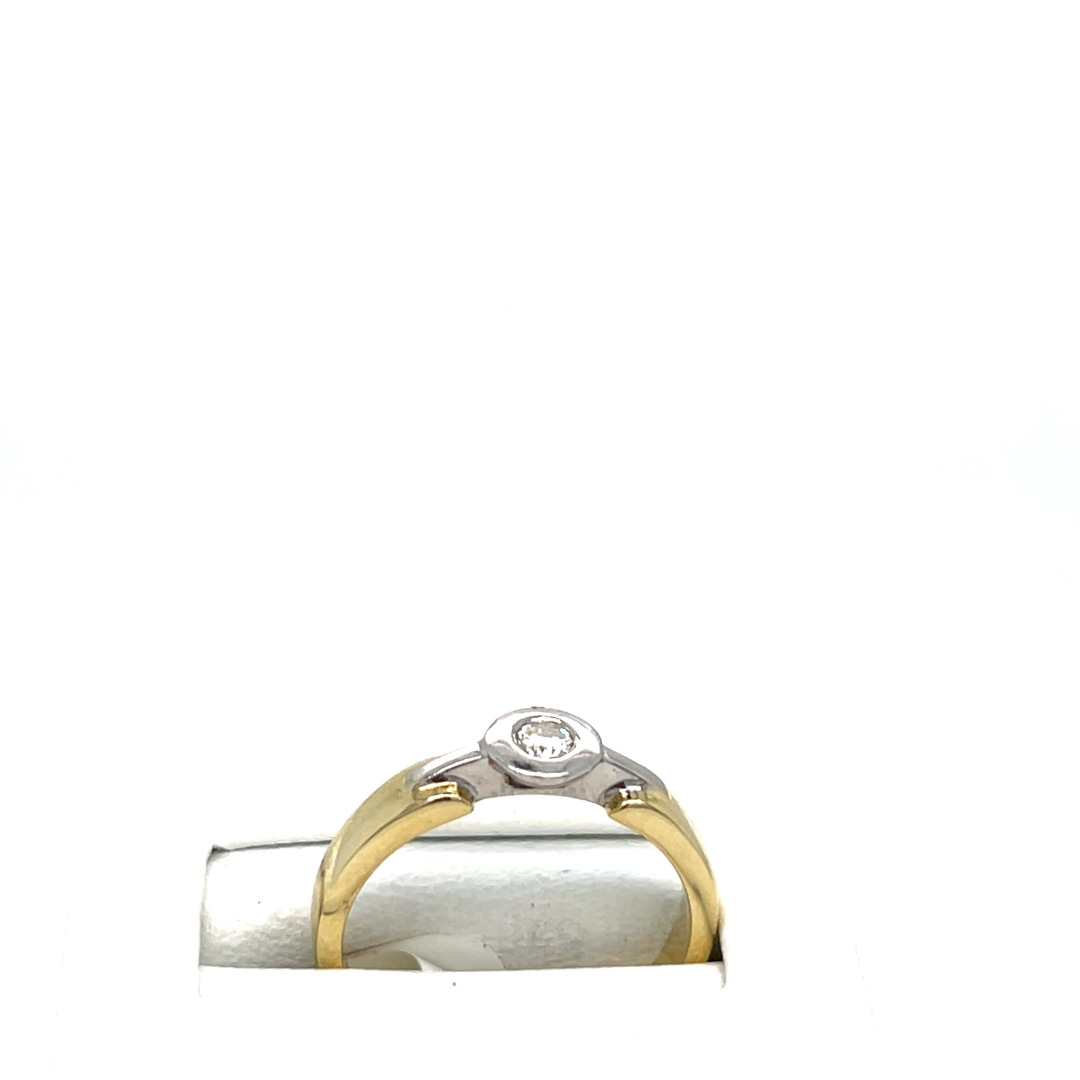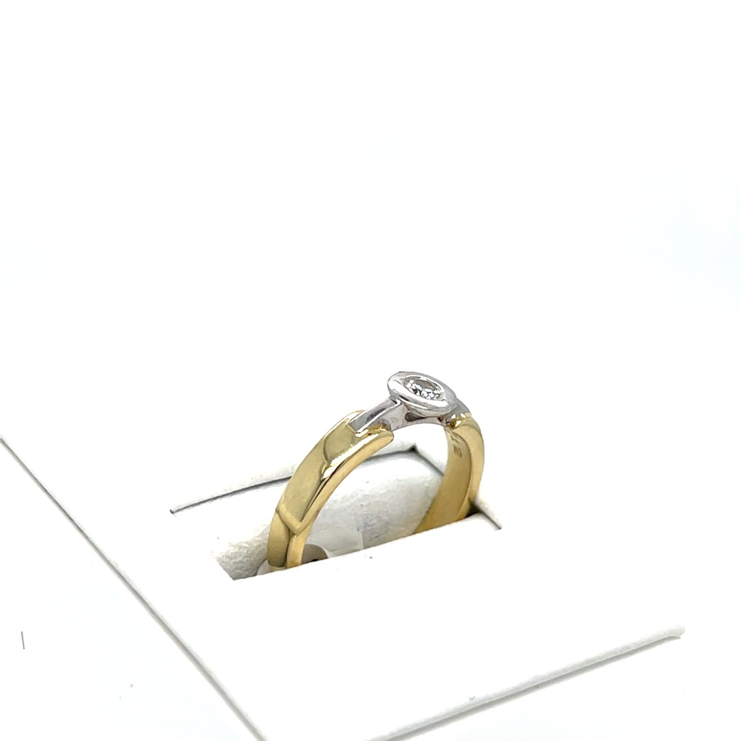 Occasion bicolor 14 karaat ring met rond aangewreven diamant
