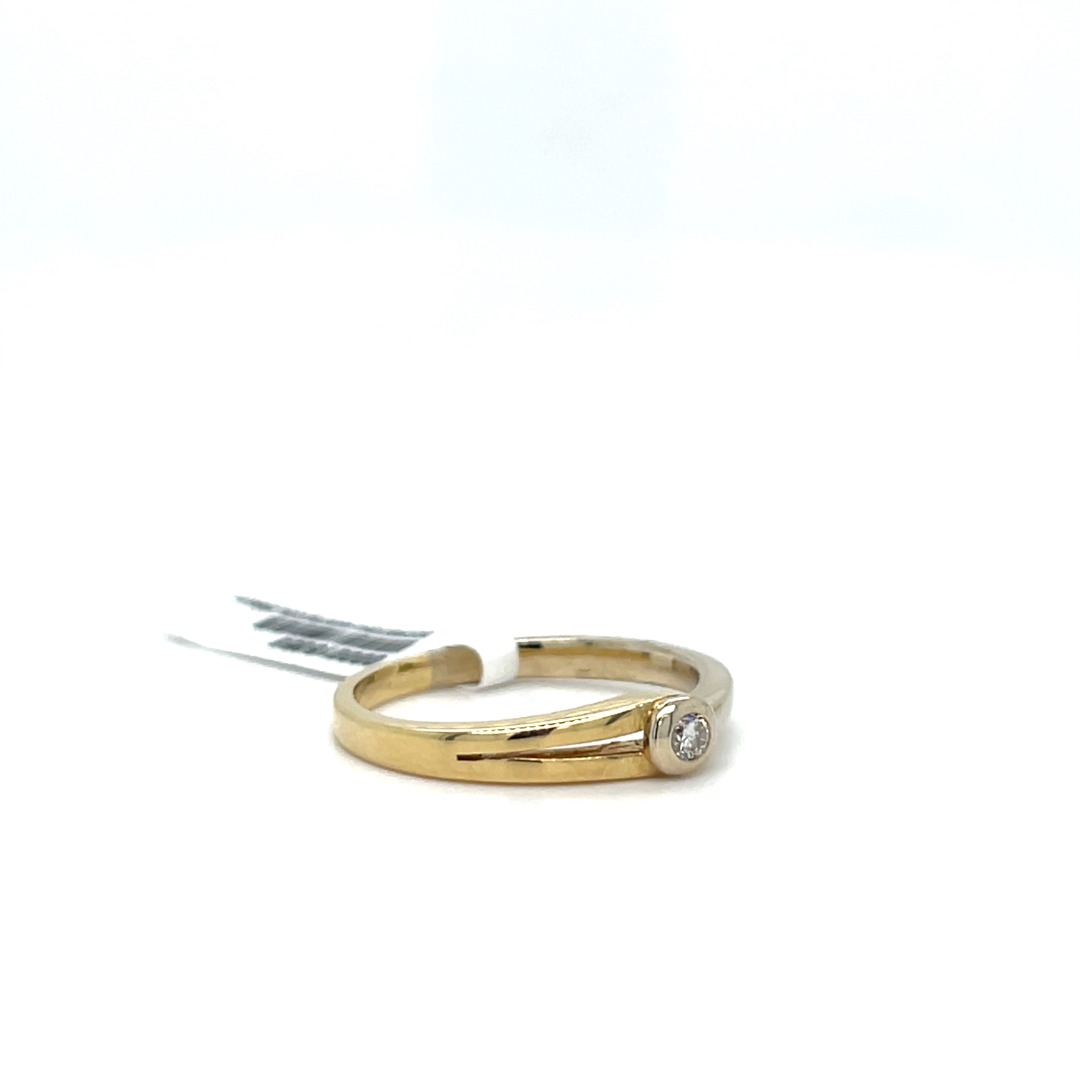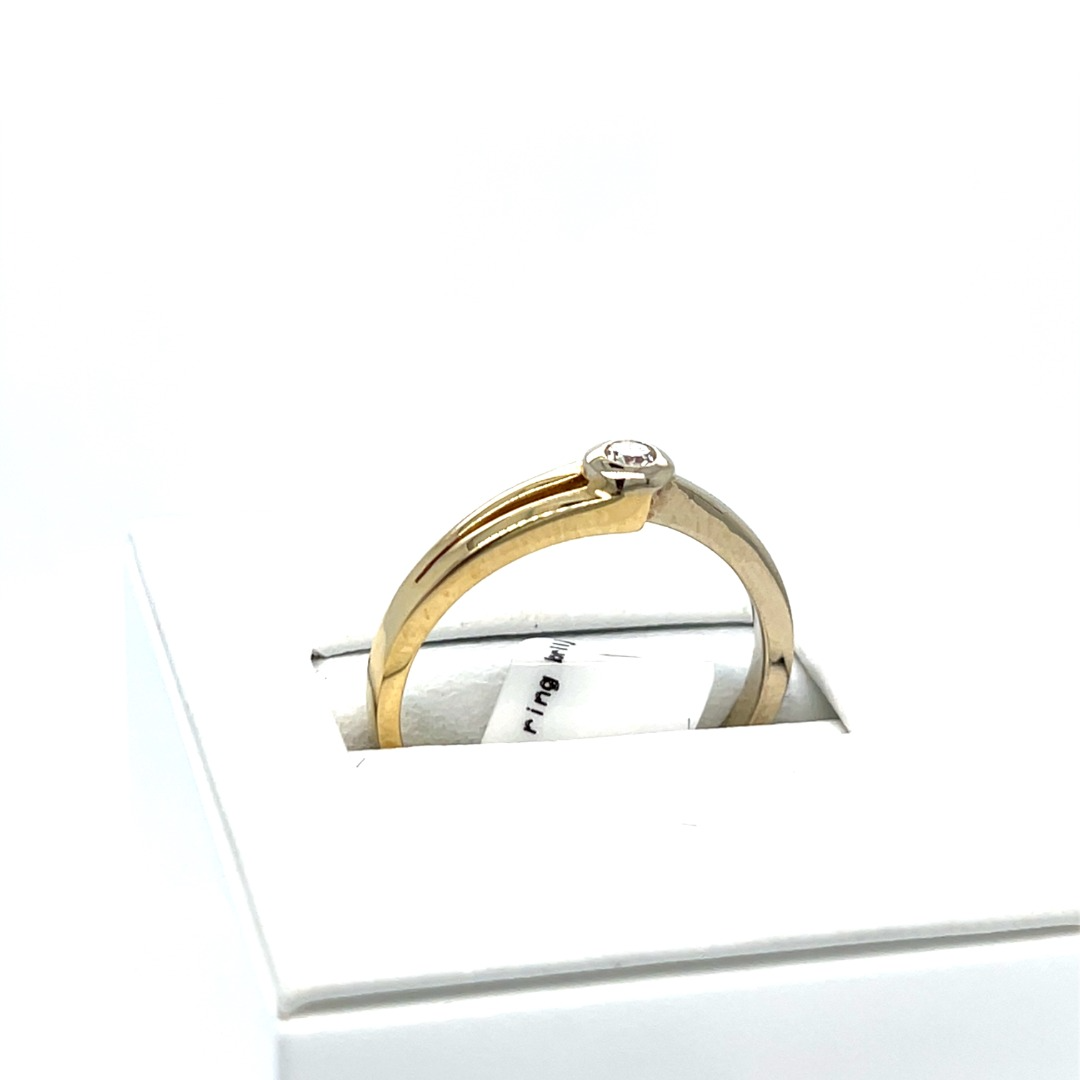 Occasion bicolor geel- en wit goud 14 karaat vorkring met diamant
