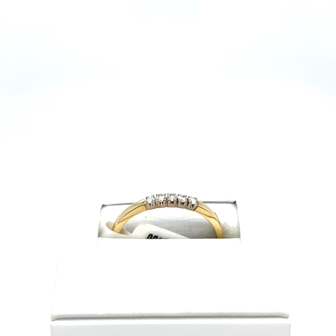 Occasion memoire ring 14 karaat geel goud met diamant in witgouden zetting