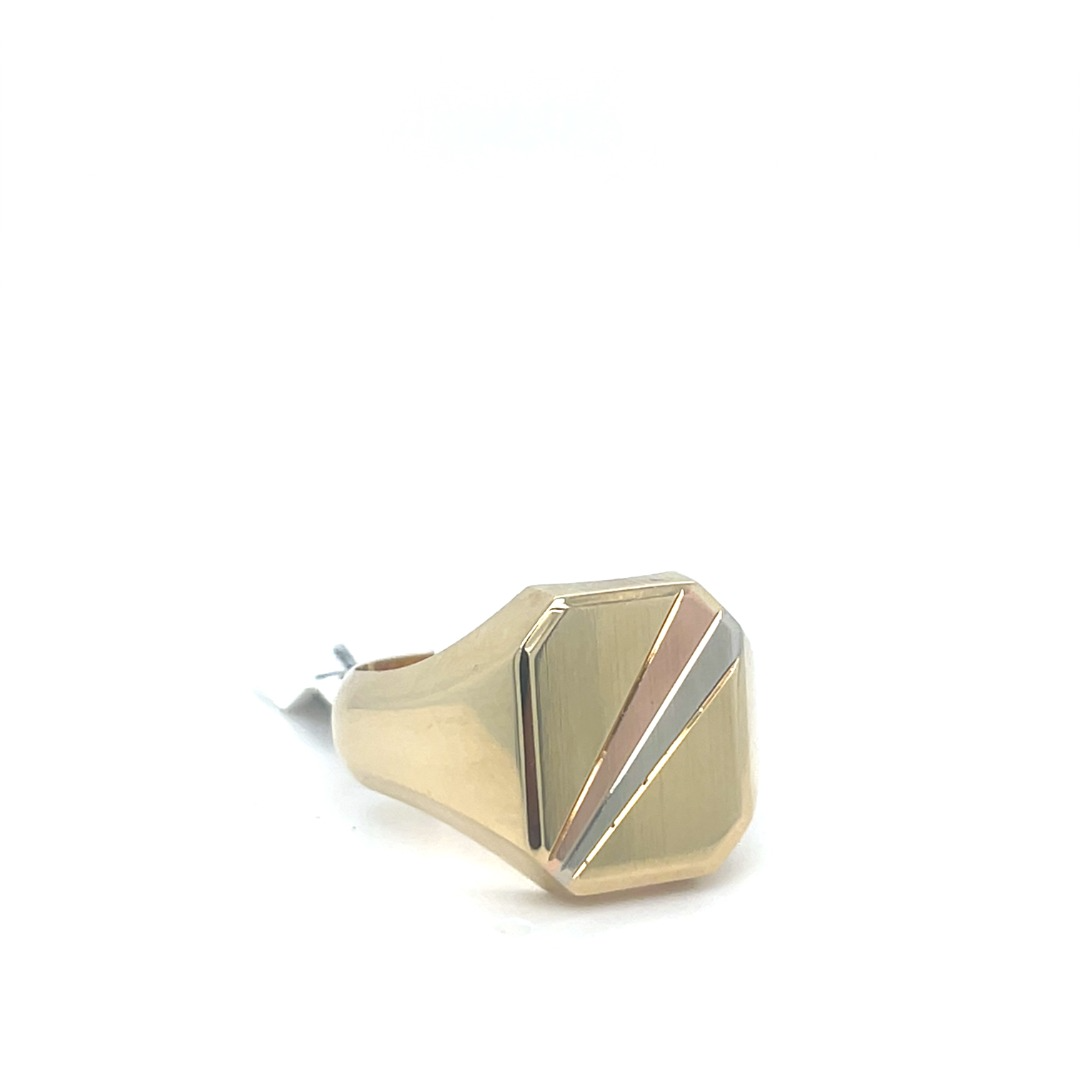 occasion 14 karaat gouden zegelring tricolor met rose- en witgoud