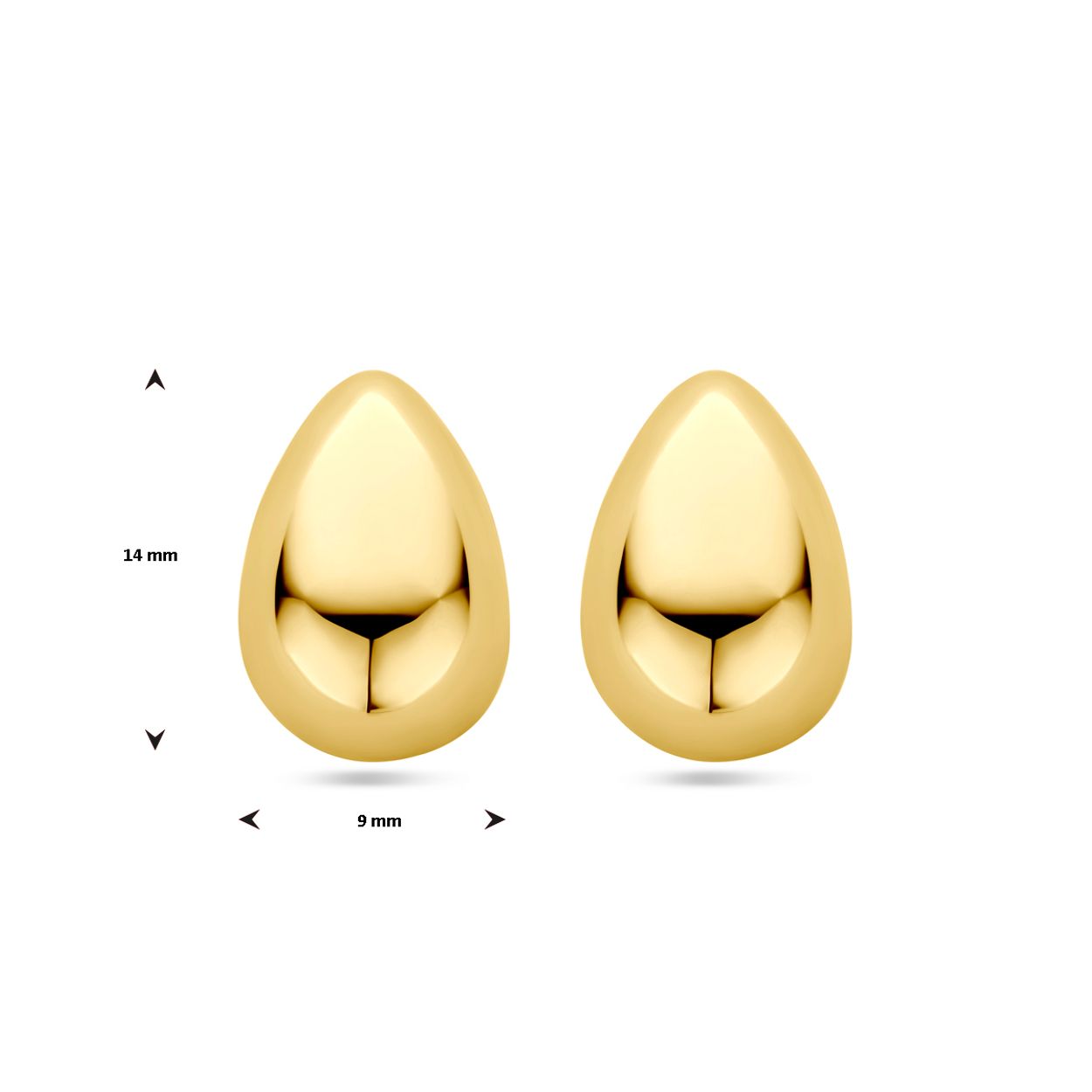14k Geelgouden oorknoppen uitgevoerd in de vorm van een druppel. De oorknoppen hebben een afmeting van 14x9mm.