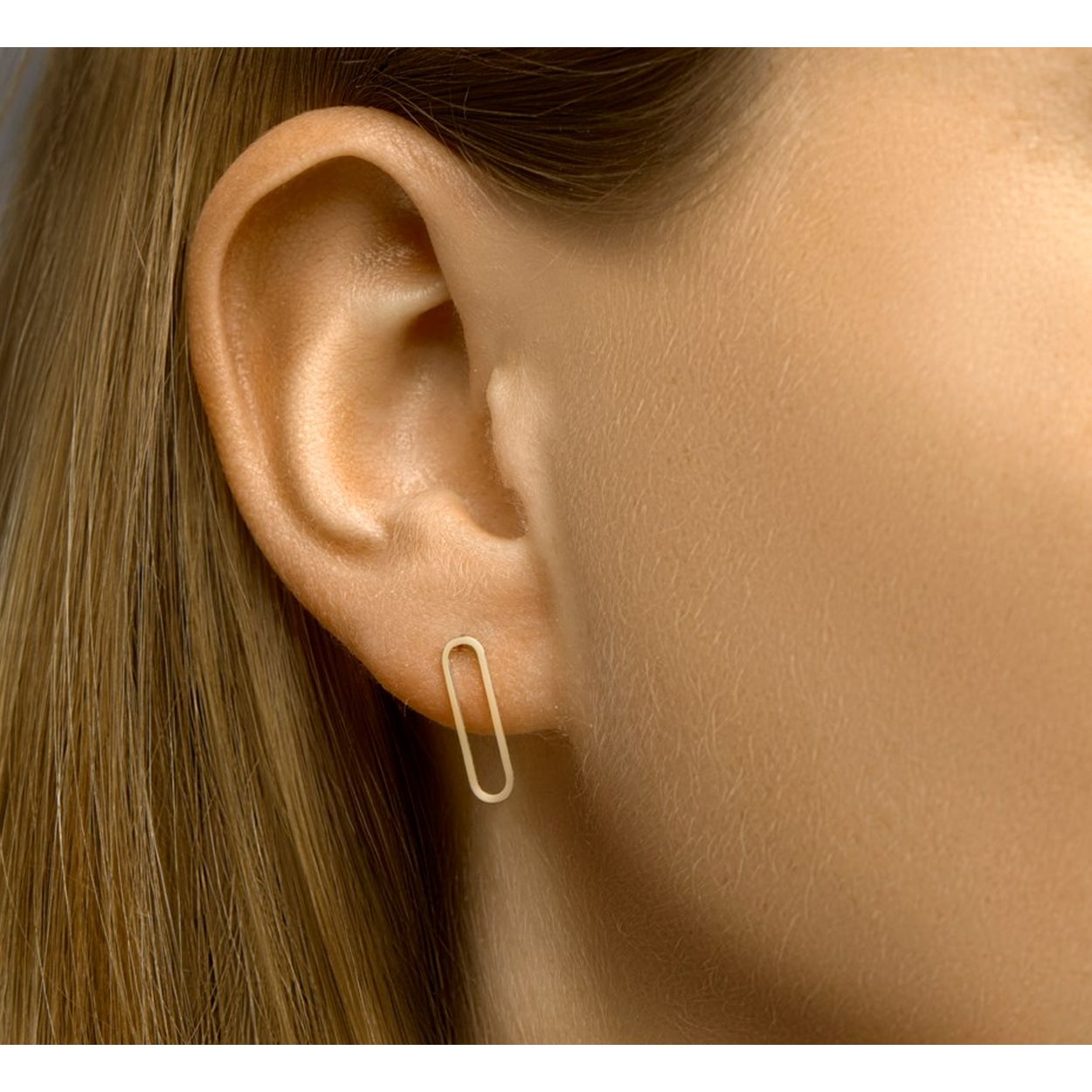 14k Geelgouden oorknoppen in schakelvorm. De oorknoppen hebben een afmeting van 15x4mm.