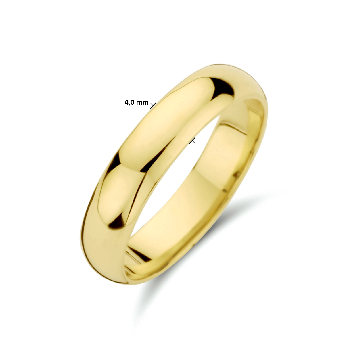 14k Geelgouden relatiering. De ring heeft een breedte van 4mm.