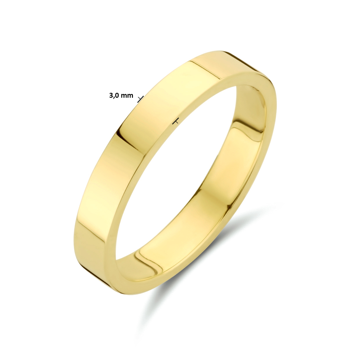 14k Geelgouden relatiering. De ring heeft een breedte van 3mm.