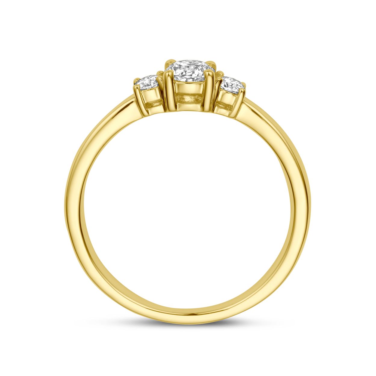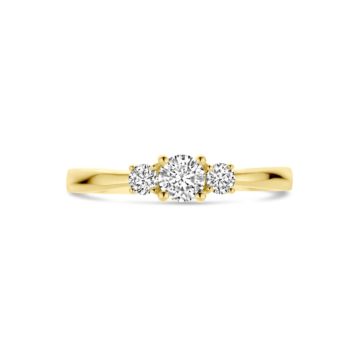 14k Geelgouden ring uitgevoerd met diamanten. De ring heeft een breedte van 4.5mm en het diamantgewicht is 0.46ct.