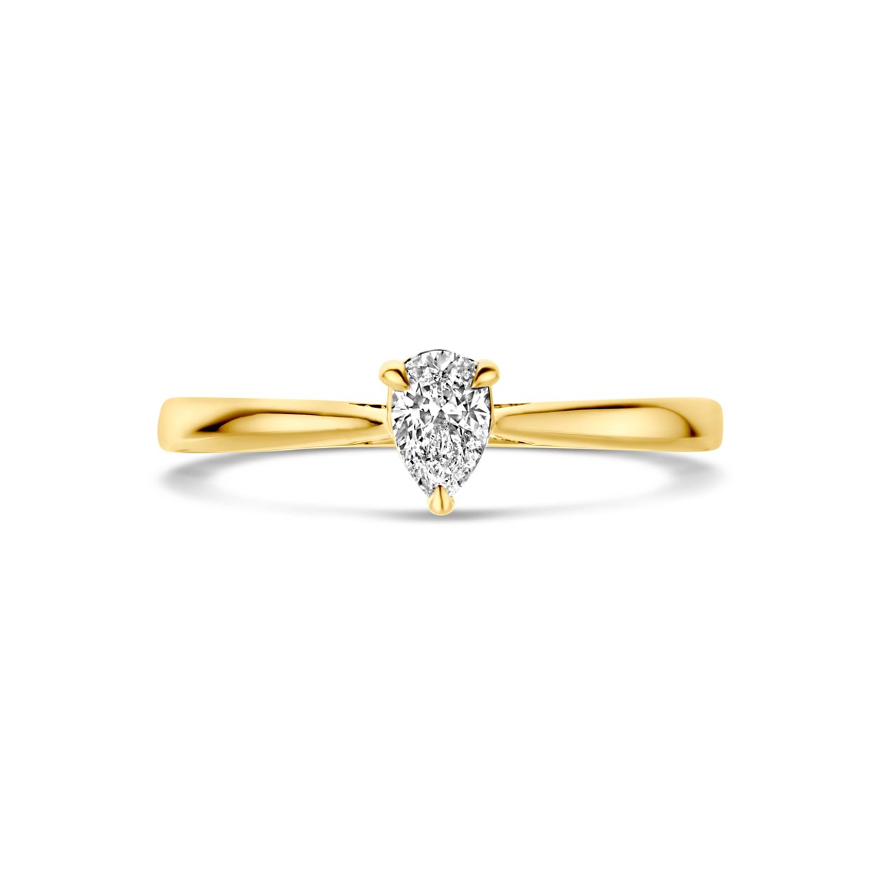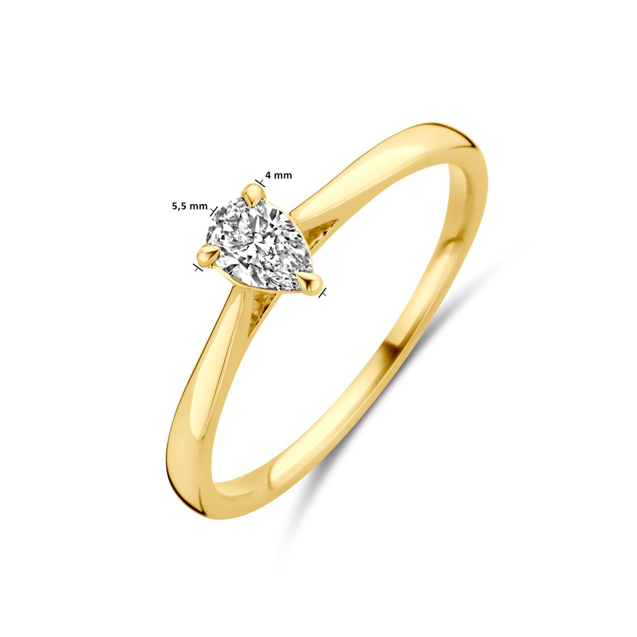 14k Geelgouden ring uitgevoerd met lab grown diamant. De ring heeft een afmeting van 5.5x4mm. De totale diamantgewicht is 0.25ct.