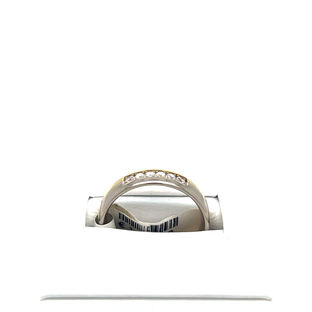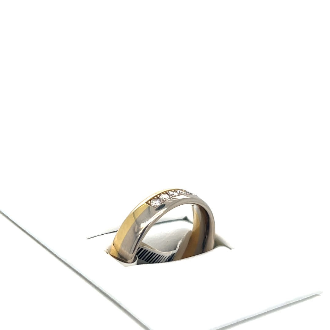Trouwring bicolor geel- en witgoud dames met 6x briljant, de ring is 5mm breed en is maat 17,5