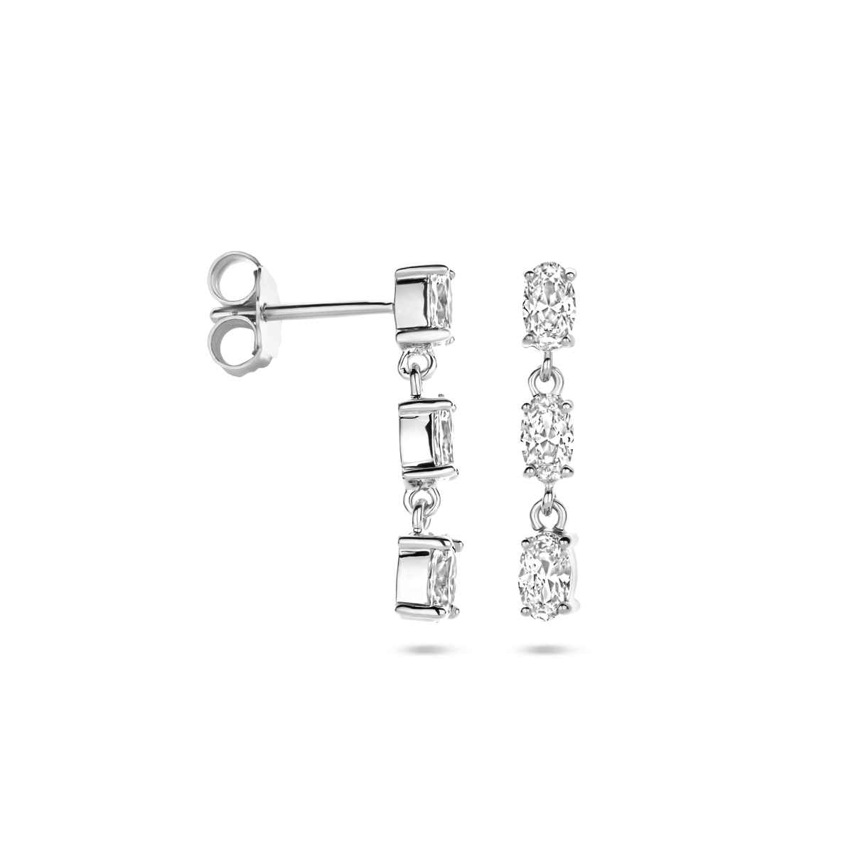 Gerhodineerd 925 zilveren oorhangers uitgevoerd met schitterende zirkonia. De oorhangers hebben een totale hoogte van 20.5mm.