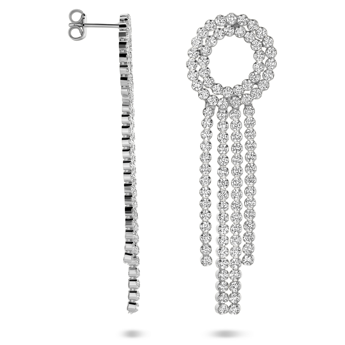 Gerhodineerd 925 zilveren oorhangers uitgevoerd met zirkonia. De oorhangers hebben een totale hoogte van 62mm.